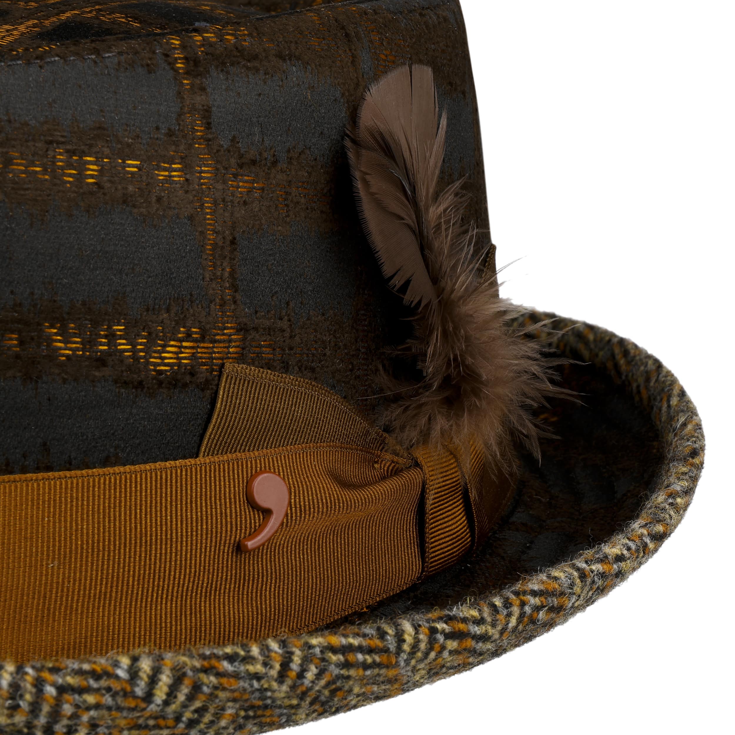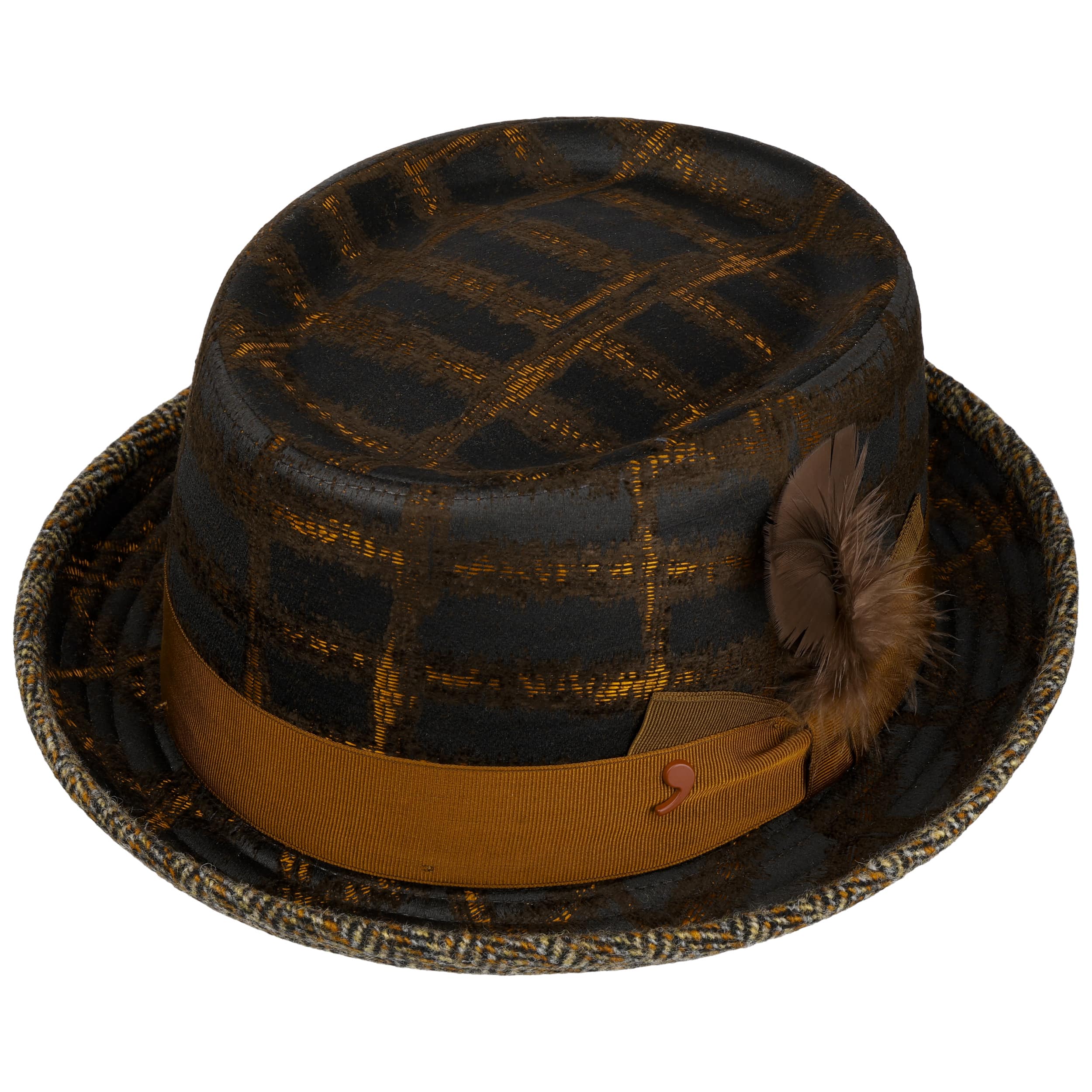 The pork pie hat from Alfonso D’Este combines classic elegance with a modern twist. The characteristic flat crown and narrow rim make it a stylish companion for special occasions and everyday wear. The grosgrain ribbon adds an elegant accent, while an extravagant pattern creates a typically striking look. A pure cotton lining makes it comfortable to wear in the cooler months of the year. The tasteful feather gives the hat a personalised touch. Made in Italy, this accessory impresses with its flavour and uniqueness.