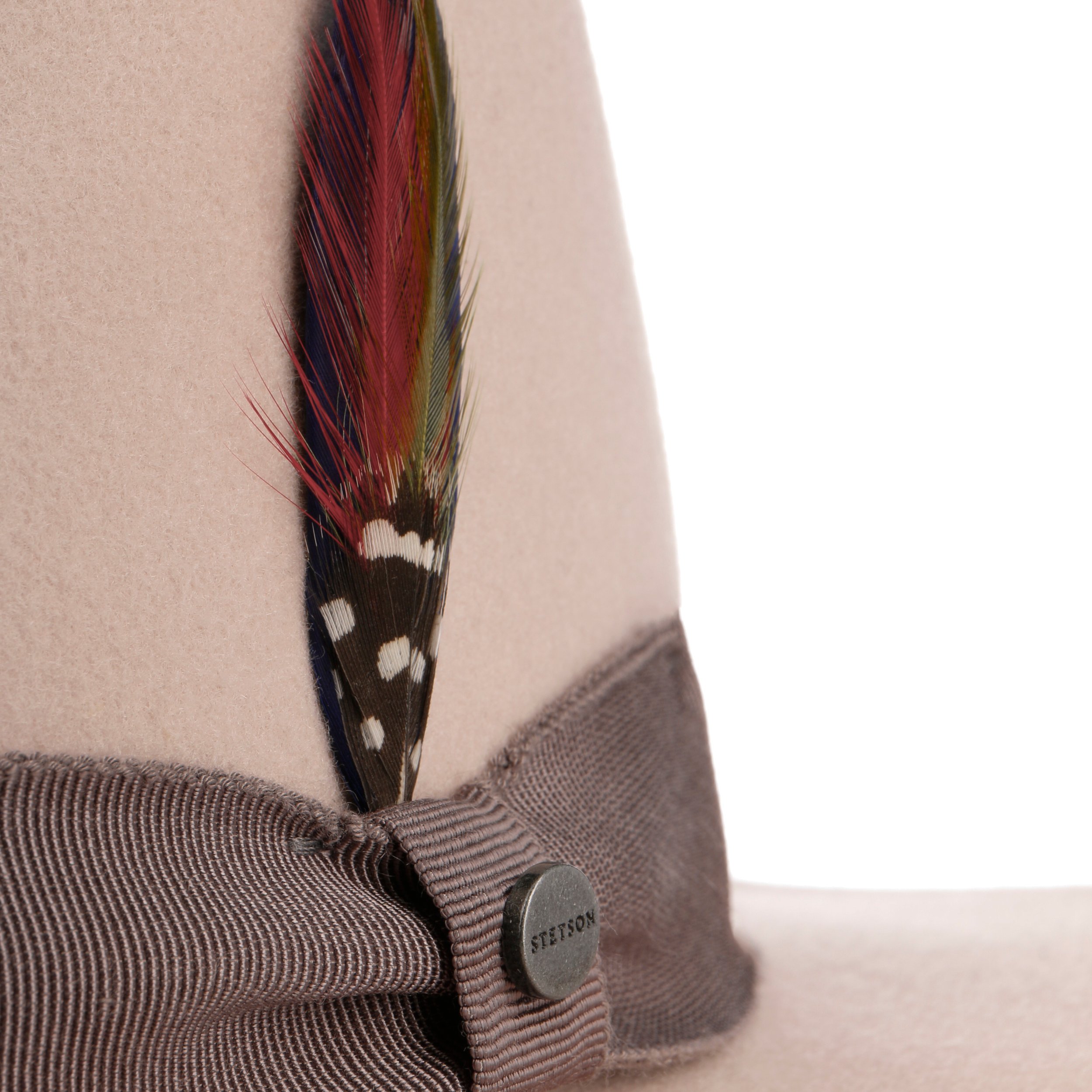 No problem with this traveller hat from Stetson. The outdoor hat is made of 100% wool felt in Asahi-Guard® quality and features water and oil-repellent properties. Raindrops simply pearl off the surface and it is also extremely easy to look after. Meanwhile, the wide grosgrain ribbon bow and feather on the side give the felt hat an elegant sense of charisma.