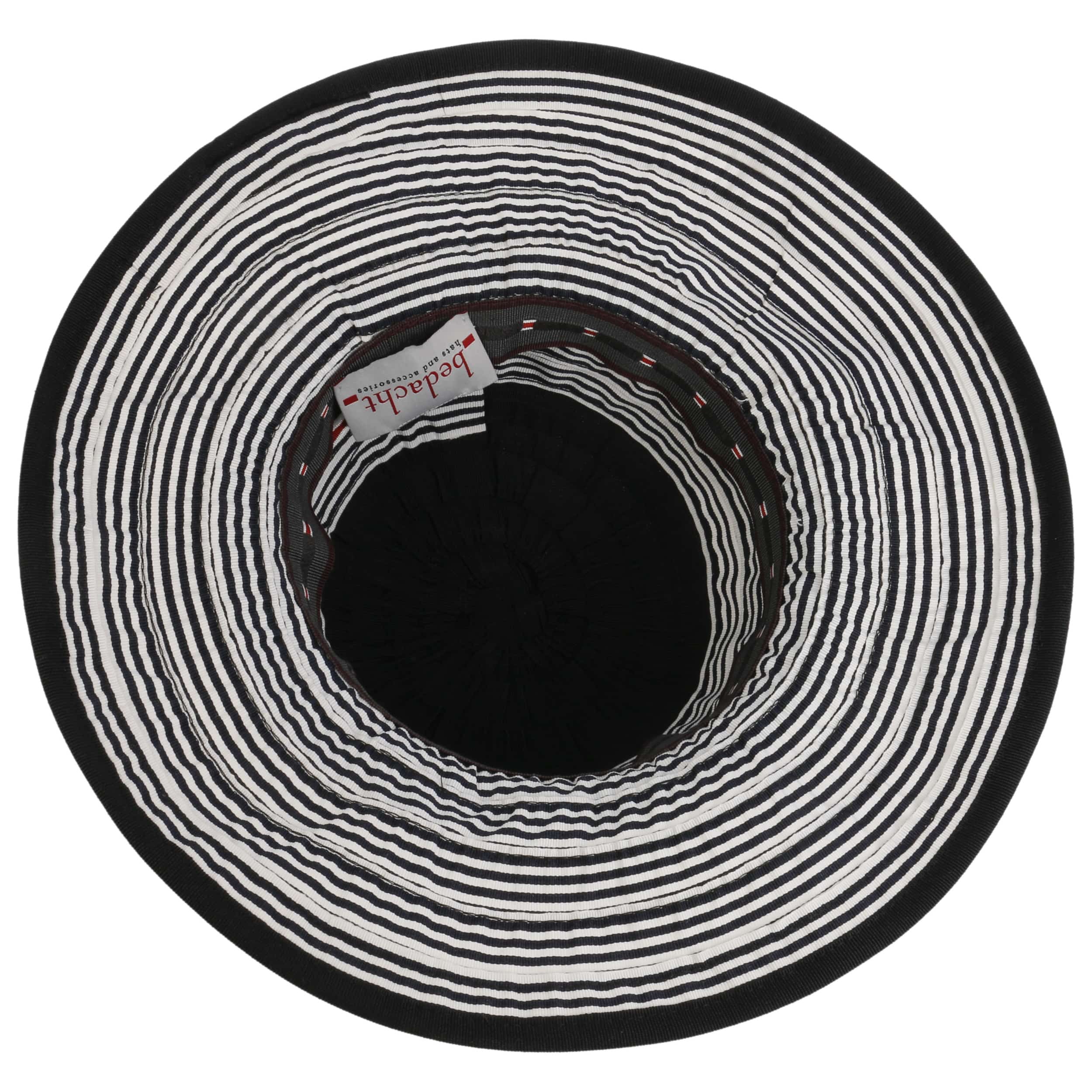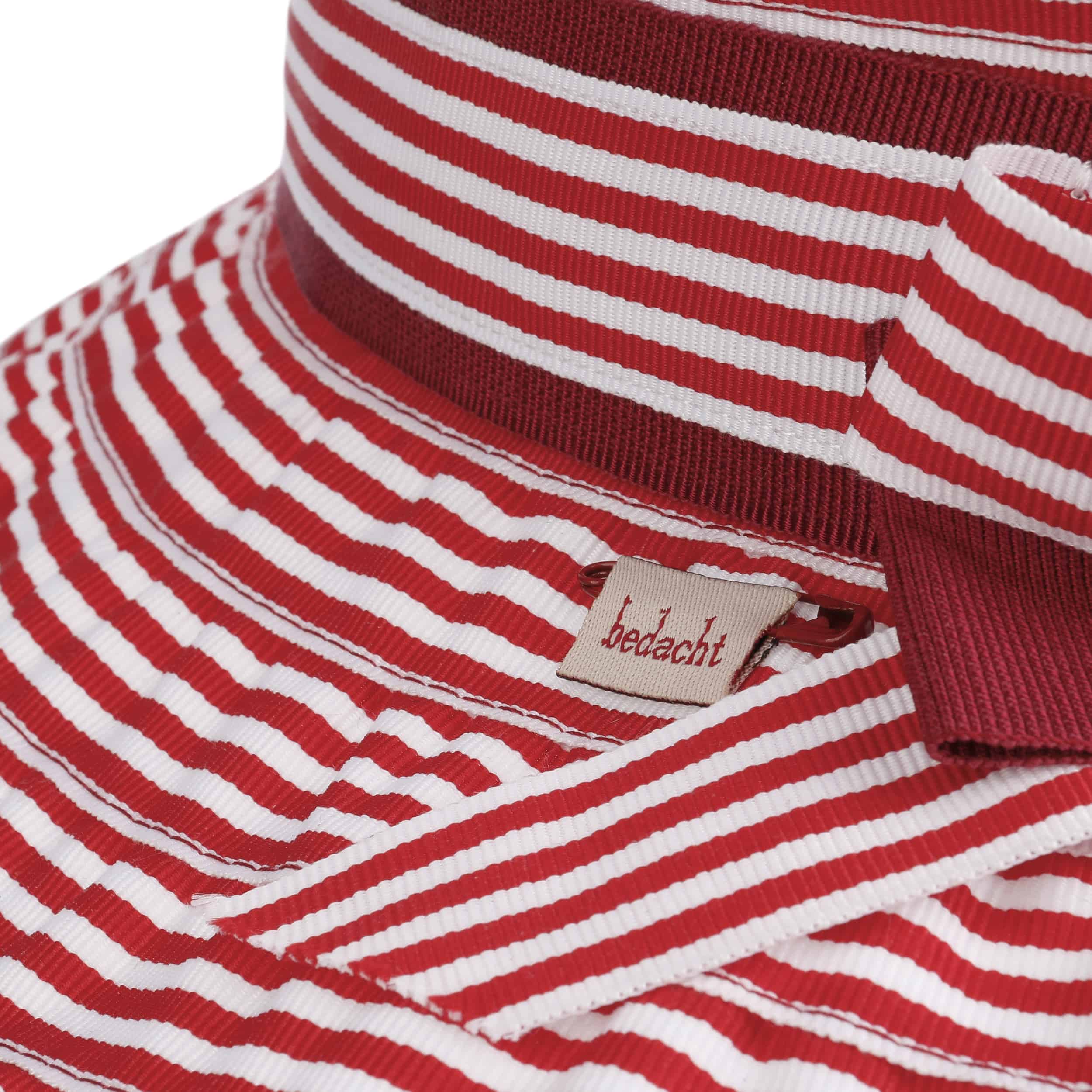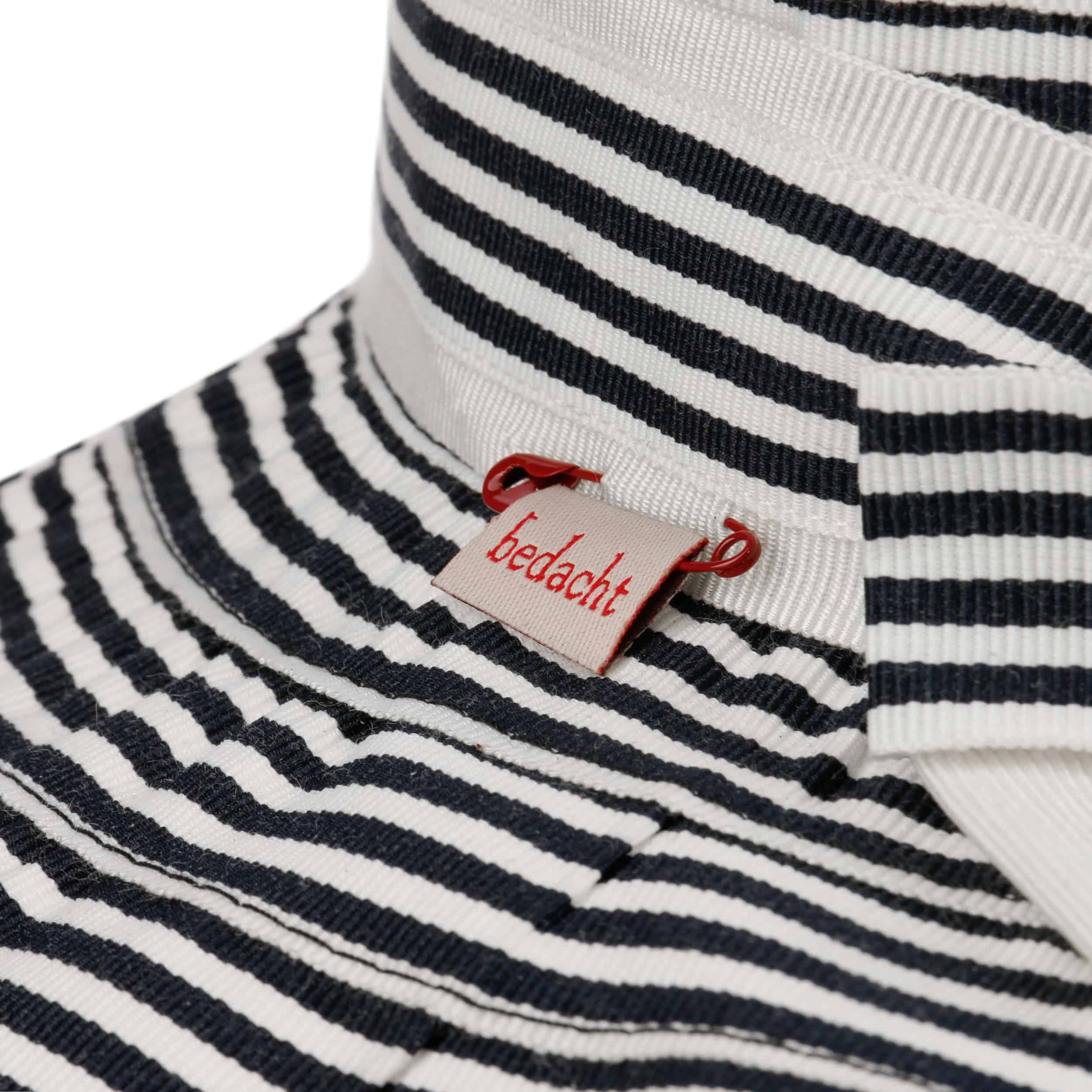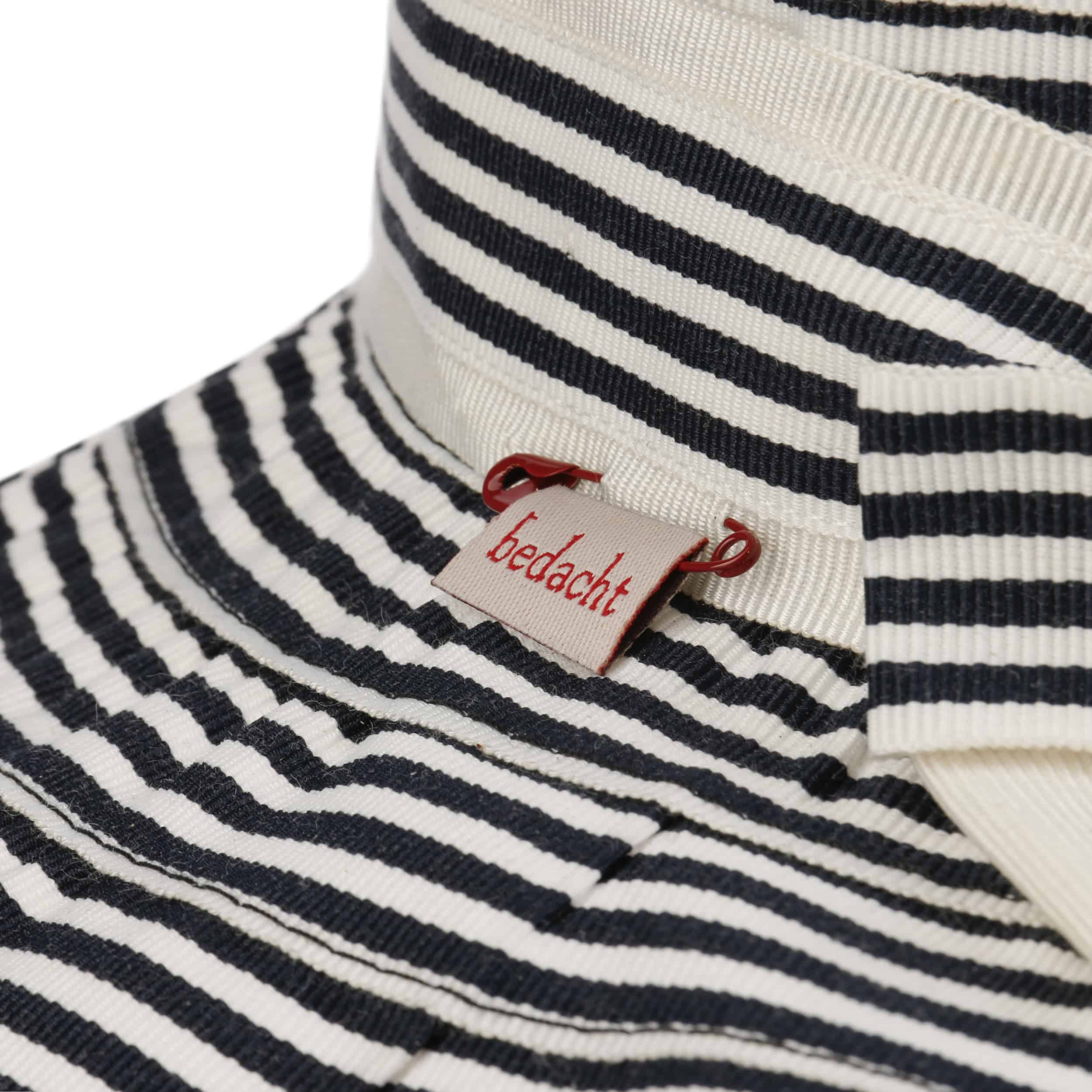 The summery floppy hat from bedacht is made from a hard-wearing cotton blend and impresses with its high-quality workmanship in Italy, the country of fashion. The two-coloured stripe pattern is complemented by a wide fabric yarn band with a large bow. It gives the flapper a cheerful, casual charm. The crushable beach hat protects you from the sun and can be combined with a variety of summer outfits.