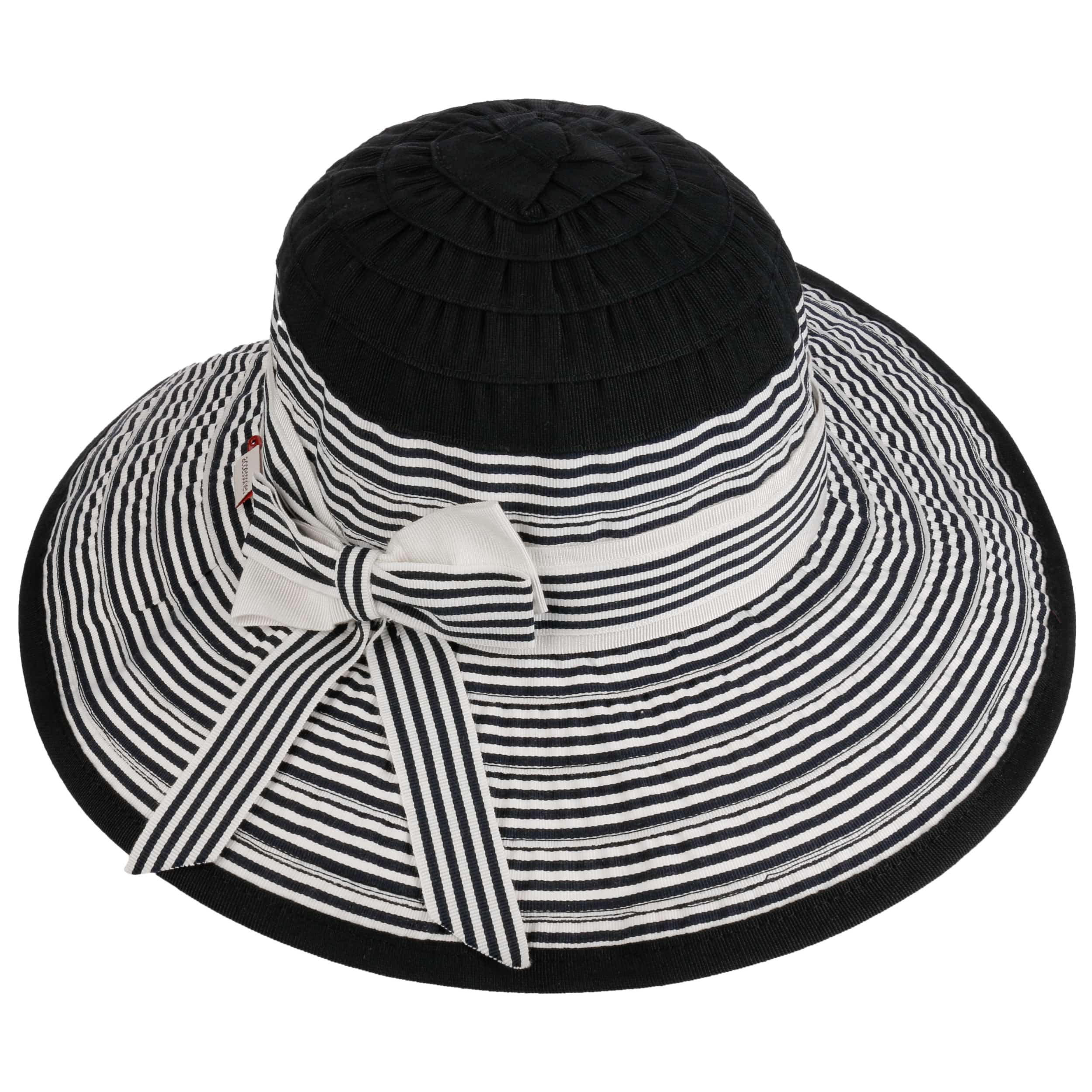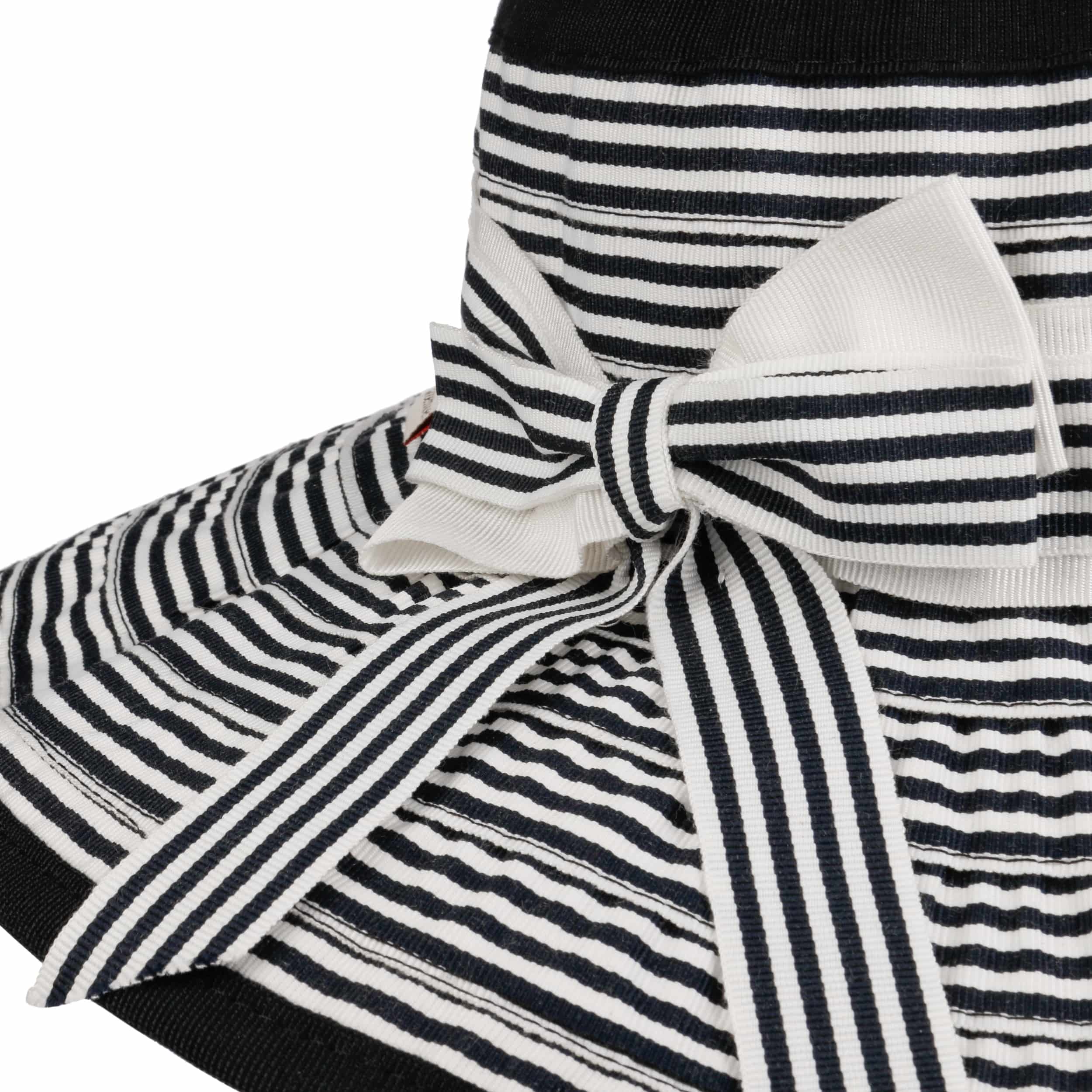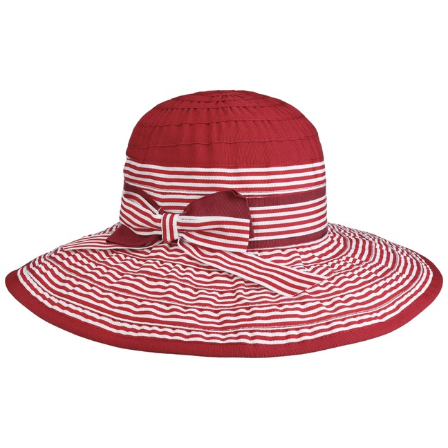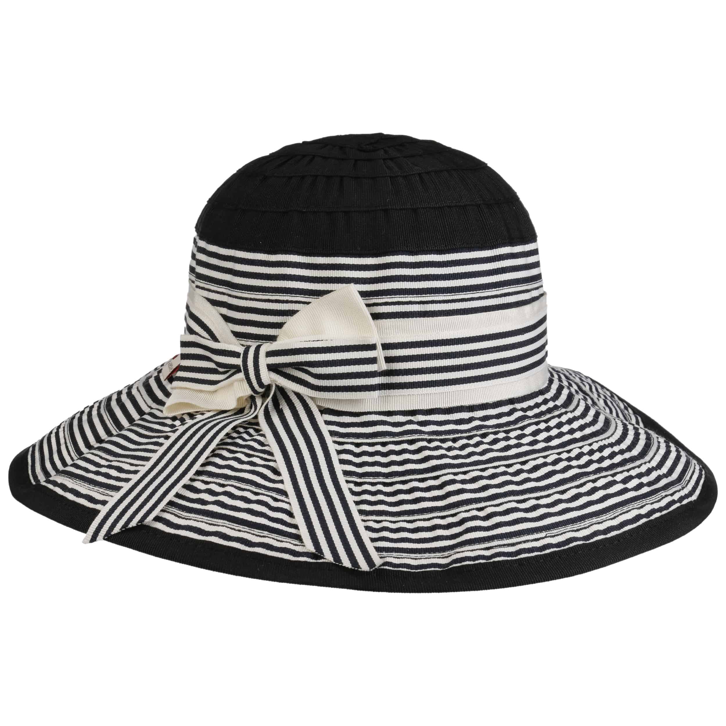 The summery floppy hat from bedacht is made from a hard-wearing cotton blend and impresses with its high-quality workmanship in Italy, the country of fashion. The two-coloured stripe pattern is complemented by a wide fabric yarn band with a large bow. It gives the flapper a cheerful, casual charm. The crushable beach hat protects you from the sun and can be combined with a variety of summer outfits.