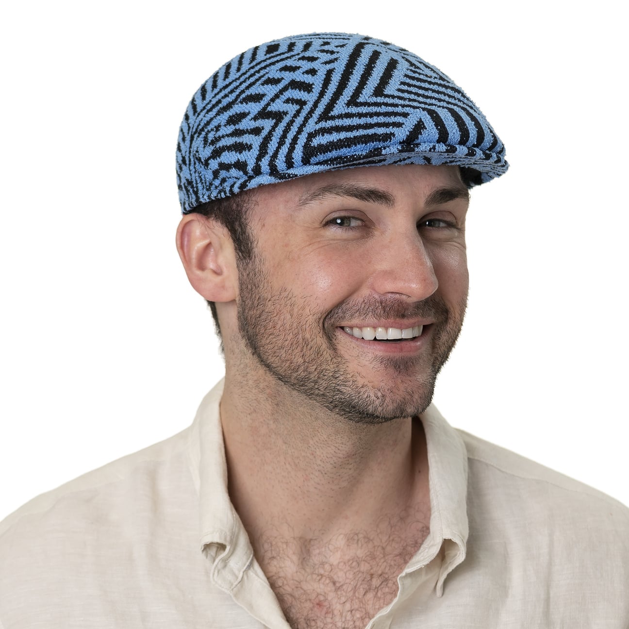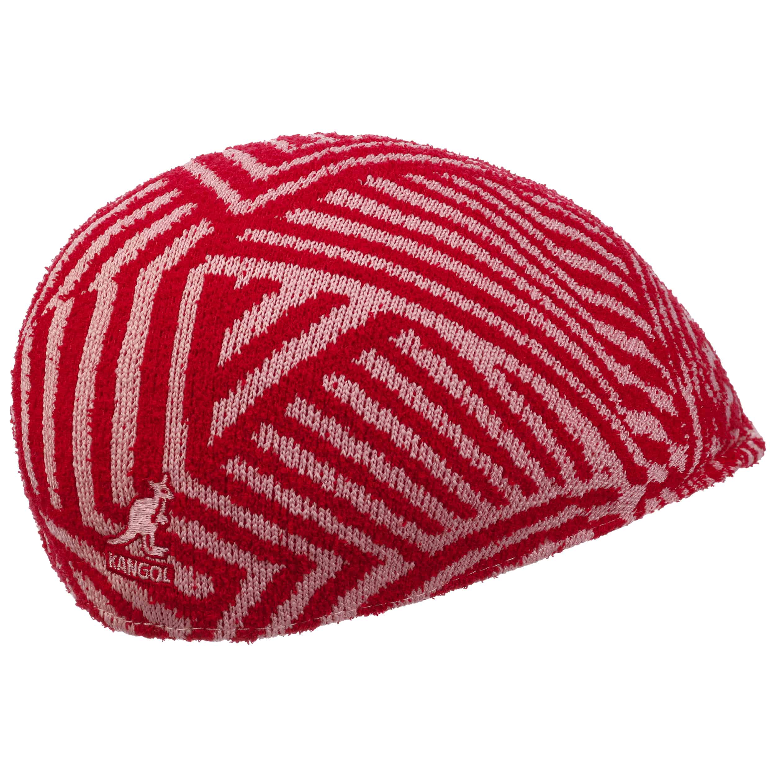 Thanks to its airy knitted fabric, this perfectly fitting flat cap is fun to wear even on warm summer days. The futuristic pattern in contrasting colours gives it a dynamic look that combines well with casual jeans or sports outfits. The Kangol logo with the famous kangaroo is discreetly placed at the back of the head. The concealed sewn peak gives the cool cap its characteristic shape.