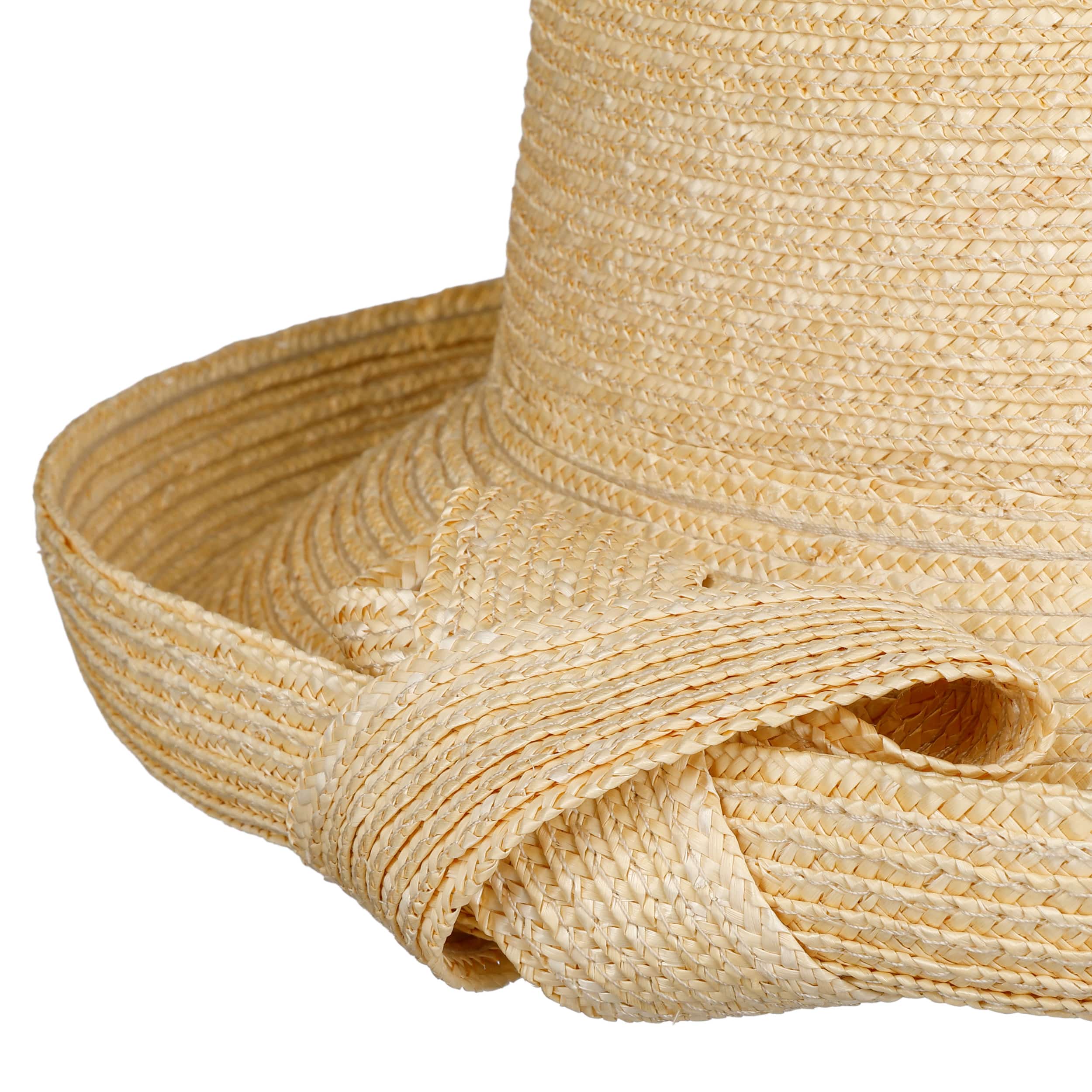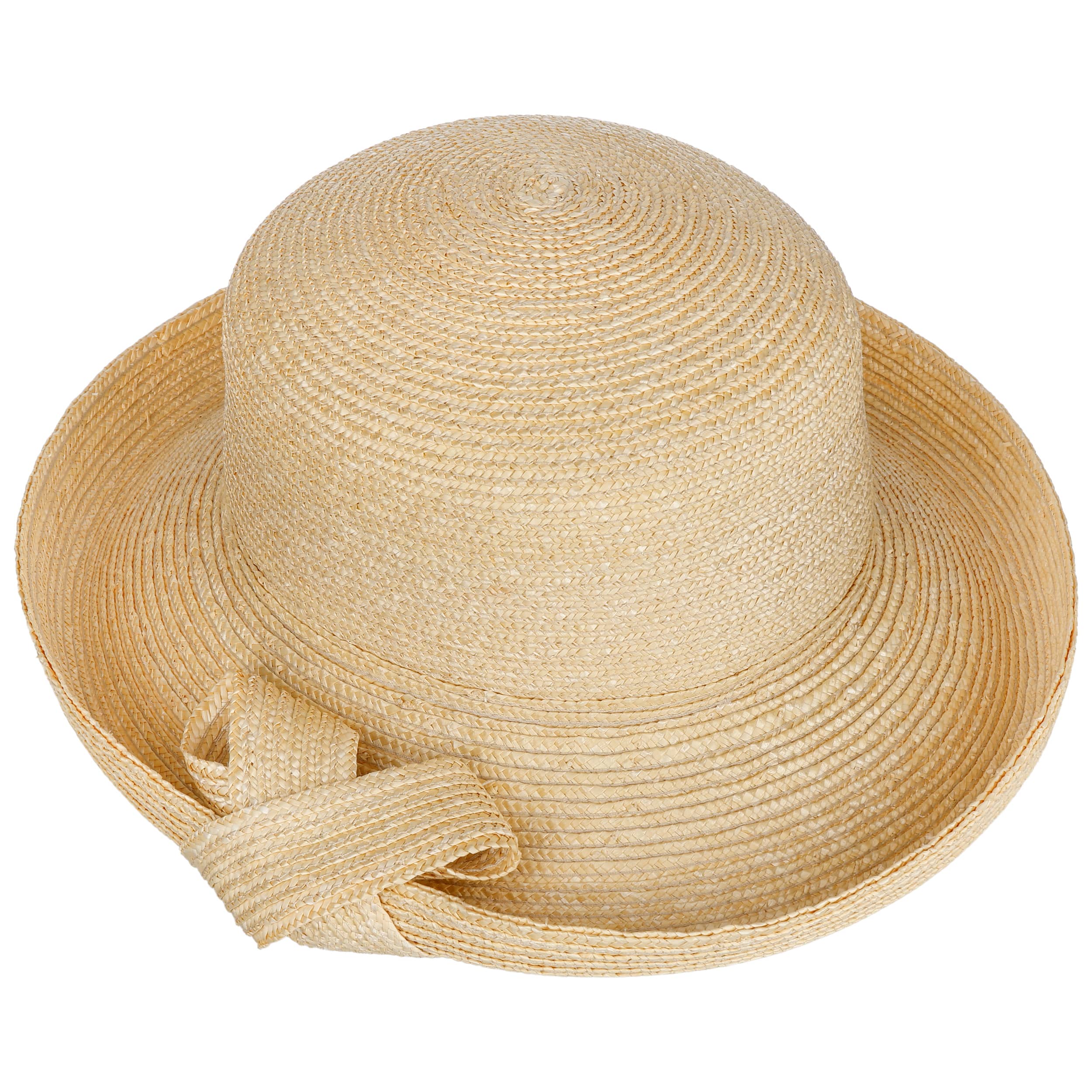 With its elegant bell shape, this turn-up cloche exudes timeless charm. Seeberger combines high-quality natural straw to create a light and airy headgear with a wide brim that provides optimum UV protection 80. The subtle braided bow underlines the feminine touch and provides a stylish accent for outings, holidays or a stroll through town. The one-size-fits-all design guarantees a comfortable fit.