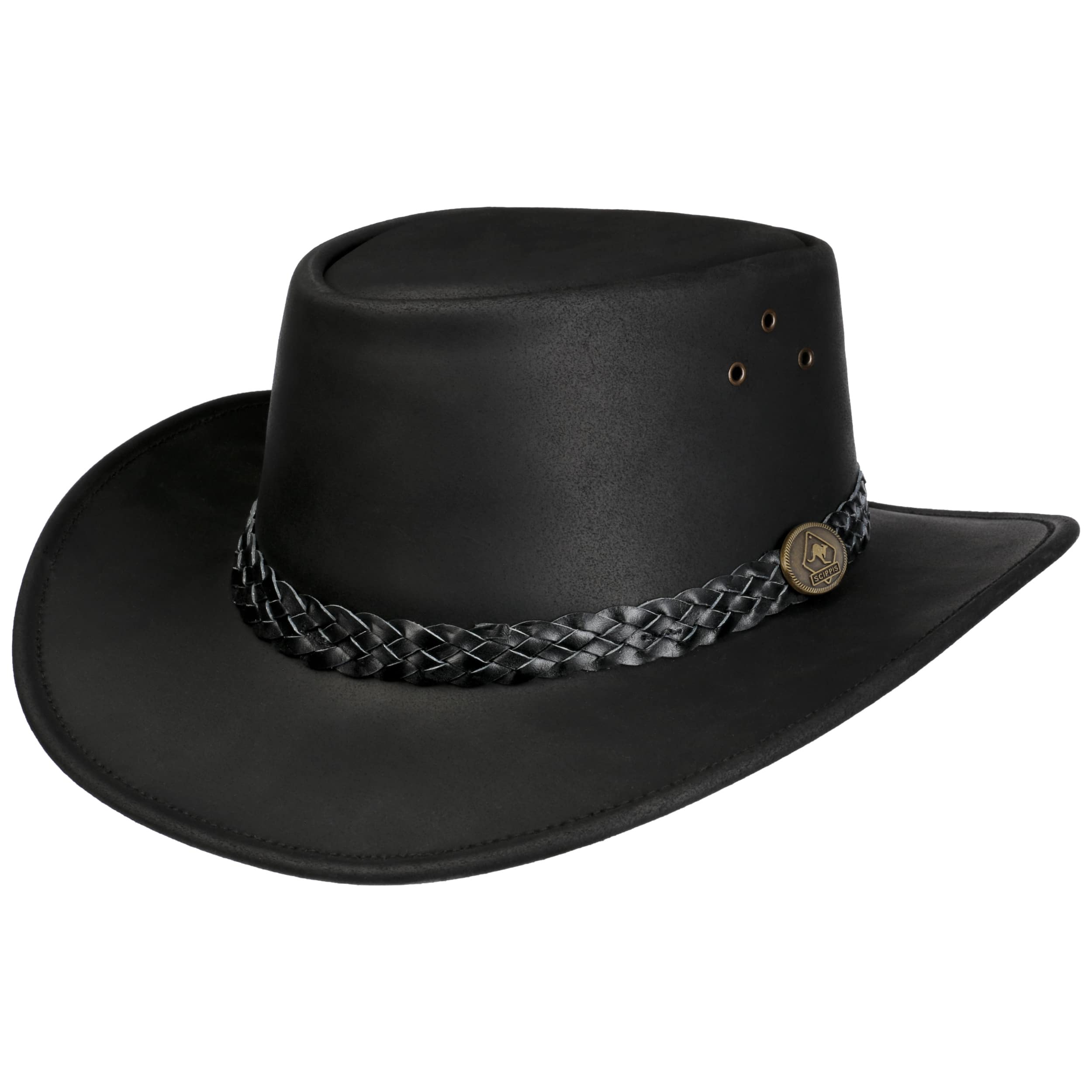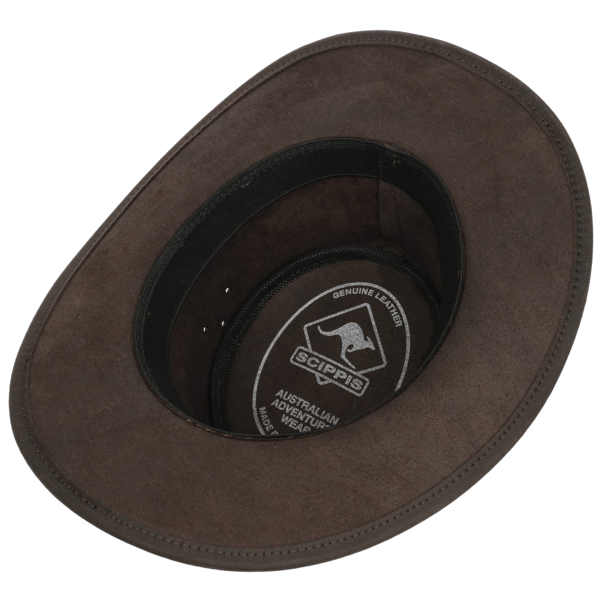 Australian headwear manufacturer. Thanks to their ambitious workmanship Scippis' natural products are ideally suited for all your outdoor activities.- Wallaroo Leather Hat by Scippis - brown 1