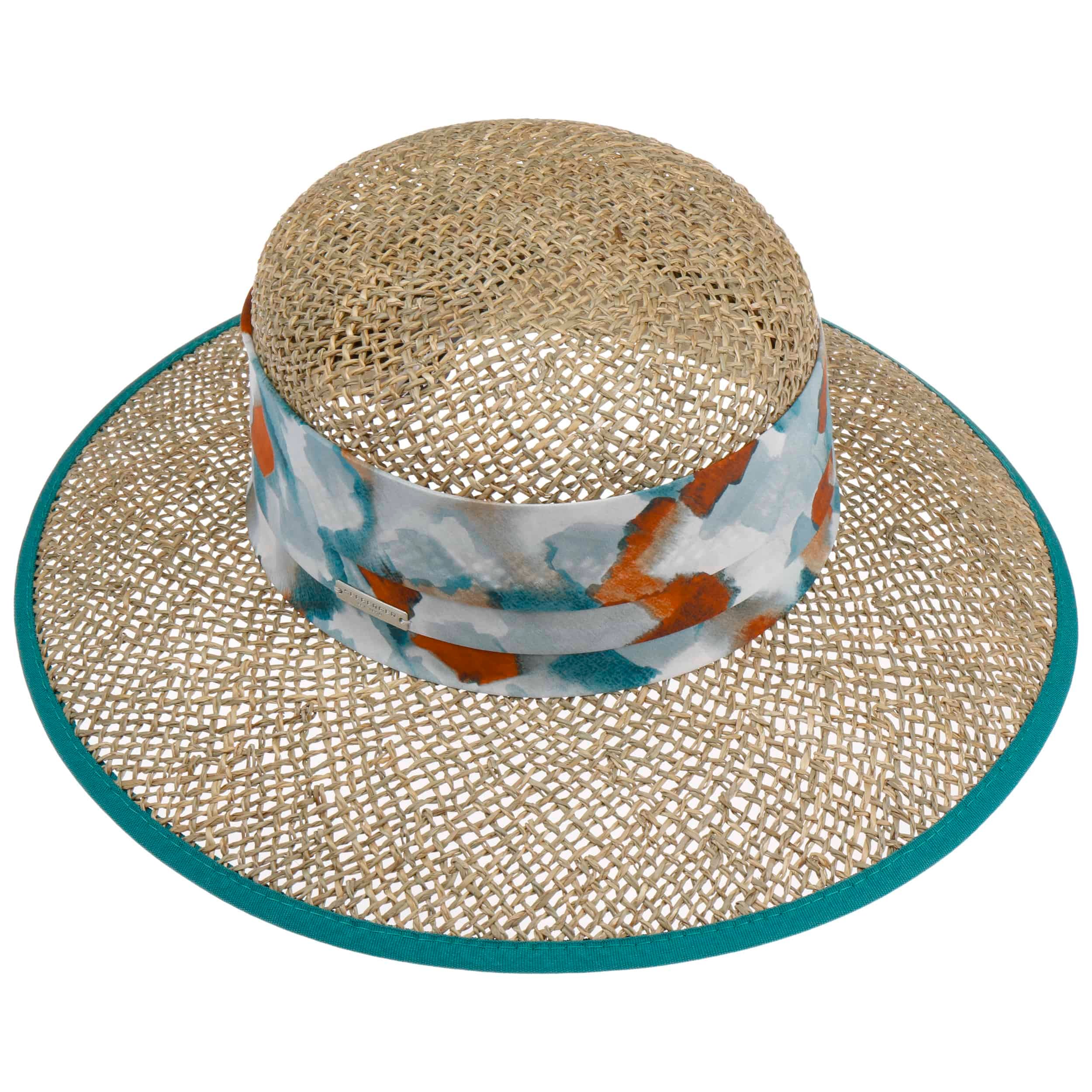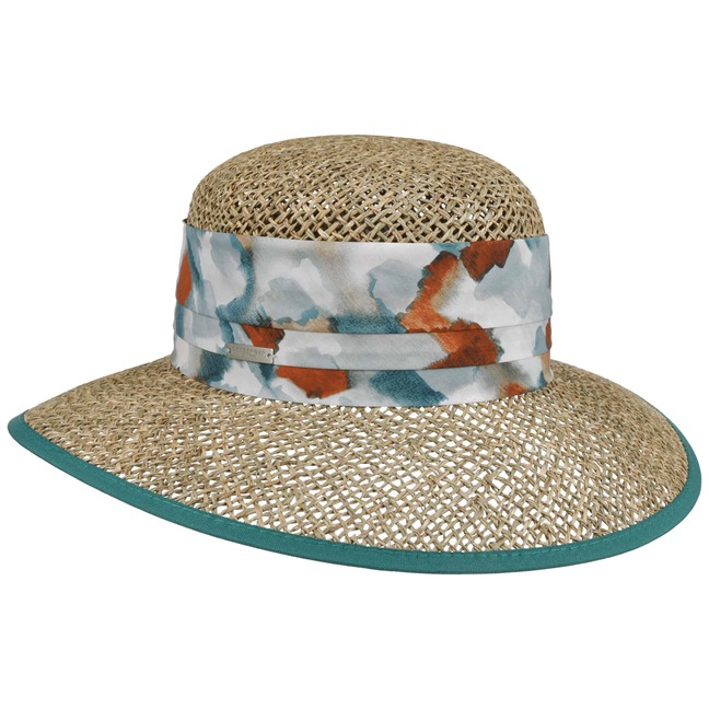 The family-owned entreprise from Allgaeu established in 1890 is known for stylish and timeless women's headwear. Using sophisticated fabrics pleasant to wear, Seeberger stands for very feminine, eye-catching women's hats: winter caps, cloth hats as well as different types of baker boy hats, broadbrimmed hats and berets.- Watercolour Seagrass Hat by Seeberger - petrol blue 1
