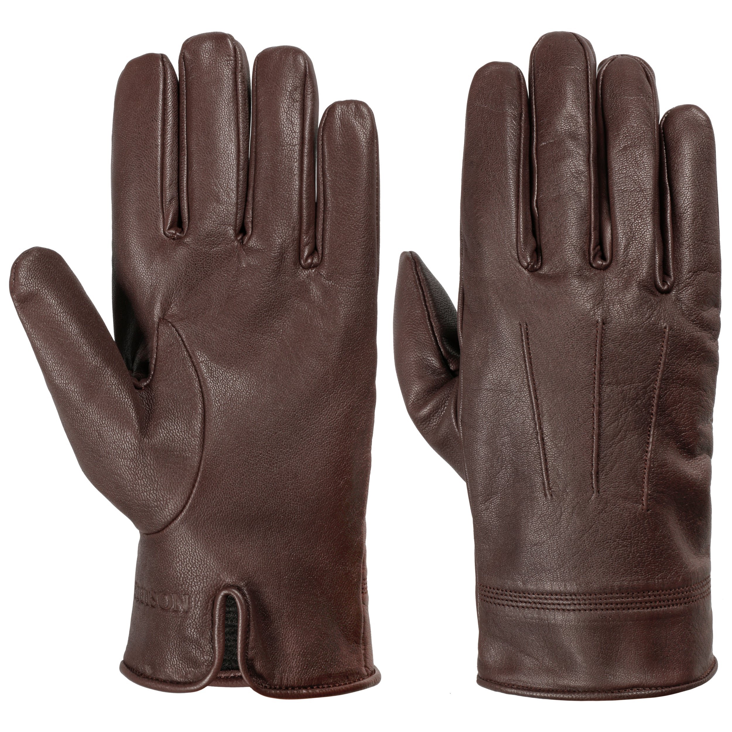 Since 1865, the name of John B. Stetson has been a synonym for best quality cowboy and Western hats. With the increasingly popular VitaFelt and VitaStraw collections, the U.S. brand has become pioneer of lightweight, water repellent and packable headwear. In the meantime, Stetson manufactures a wide range of first-class styles: army and baseball caps, flat hats, docker caps, beanies, trilbies and cowboy hats in many different designs.- Waxed Goatskin Gloves by Stetson - dark brown 1