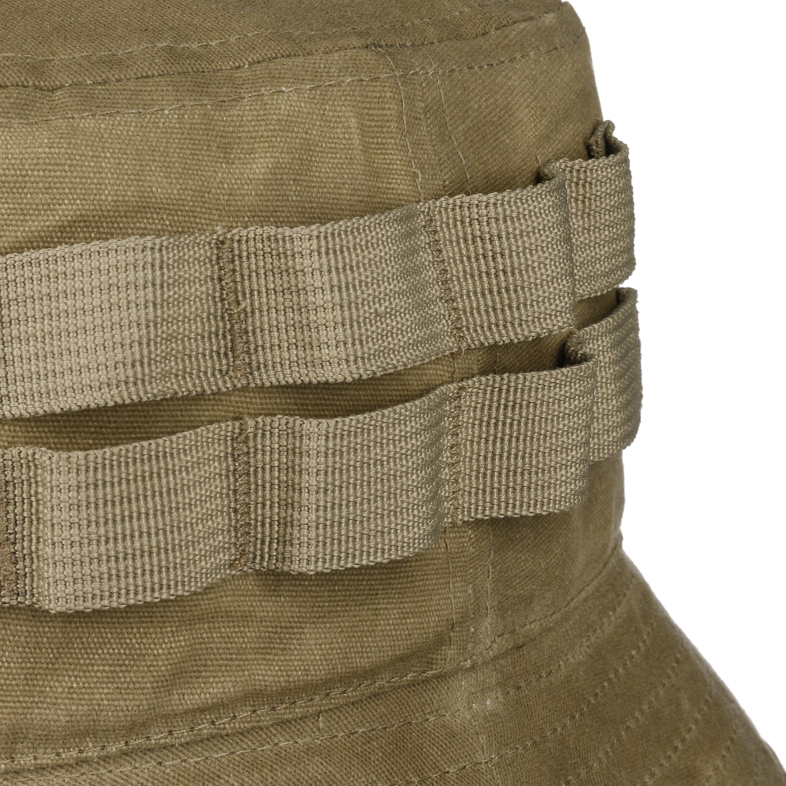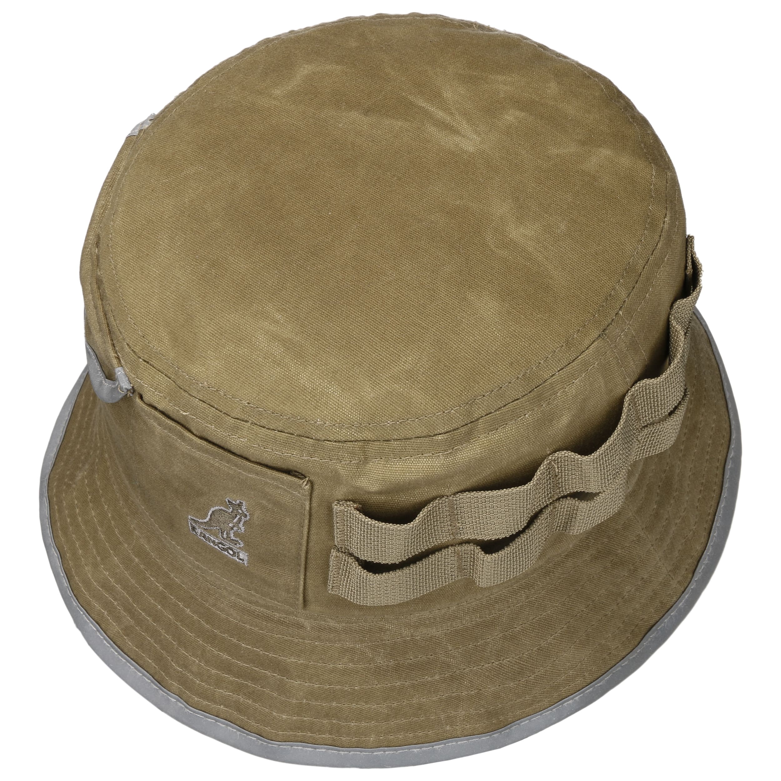 Whether on a fishing trip or a hike through woods and meadows - the bucket hat from Kangol is the perfect headwear for adventure seekers. The crushable hat is made of cotton, protects from the sun and also keeps raindrops away from the head with its waxed surface. The brim and pocket flap are edged with reflective tape. Small storage pockets can be attached to the loops.