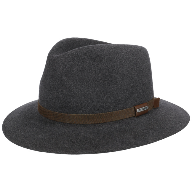 Since 1865, the name of John B. Stetson has been a synonym for best quality cowboy and Western hats. With the increasingly popular VitaFelt and VitaStraw collections, the U.S. brand has become pioneer of lightweight, water repellent and packable headwear. In the meantime, Stetson manufactures a wide range of first-class styles: army and baseball caps, flat hats, docker caps, beanies, trilbies and cowboy hats in many different designs.- Wesburg Traveller Fur Felt Hat by Stetson - grey-mottled 1