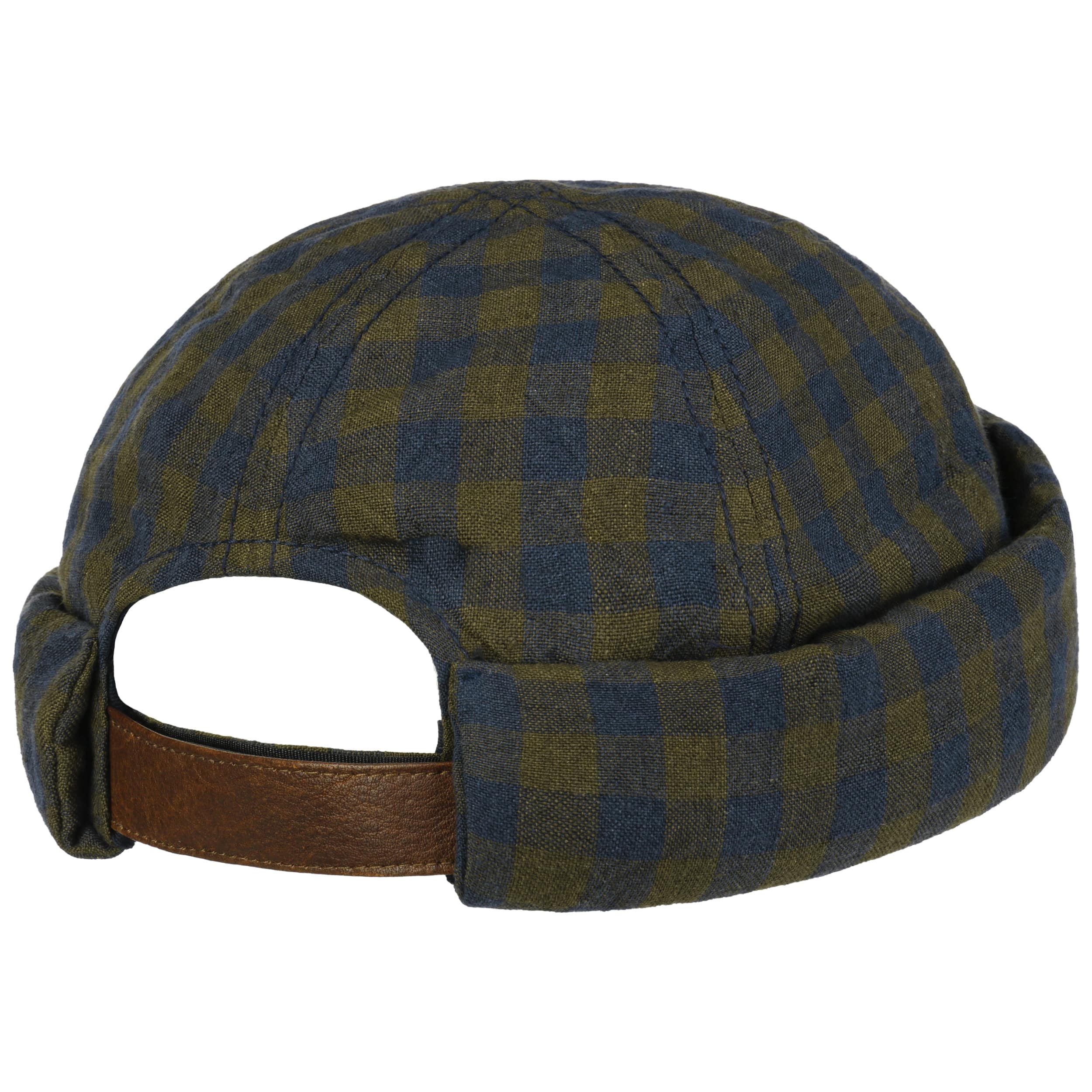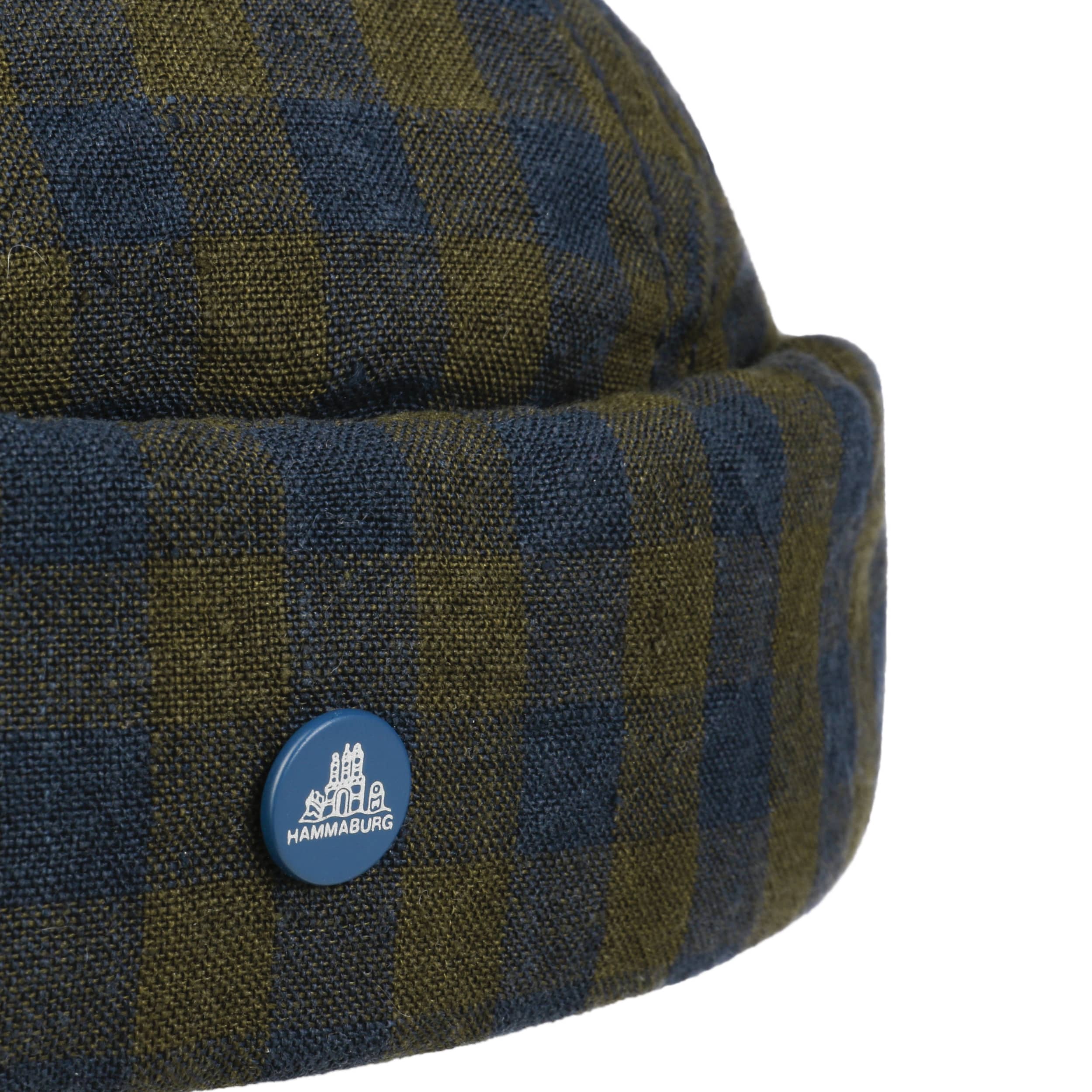 The docker cap from Hammaburg is perfect for the summer. The two-tone chequered pattern arouses a good mood and can be flexibly combined with your casual wardrobe, the 100% Irish linen fabric offers climate-regulating comfort and a breathable 100% cotton lining nestles around the head on the inside. A leather and hook-and-loop fastener at the back of the head allows individual size adjustment.