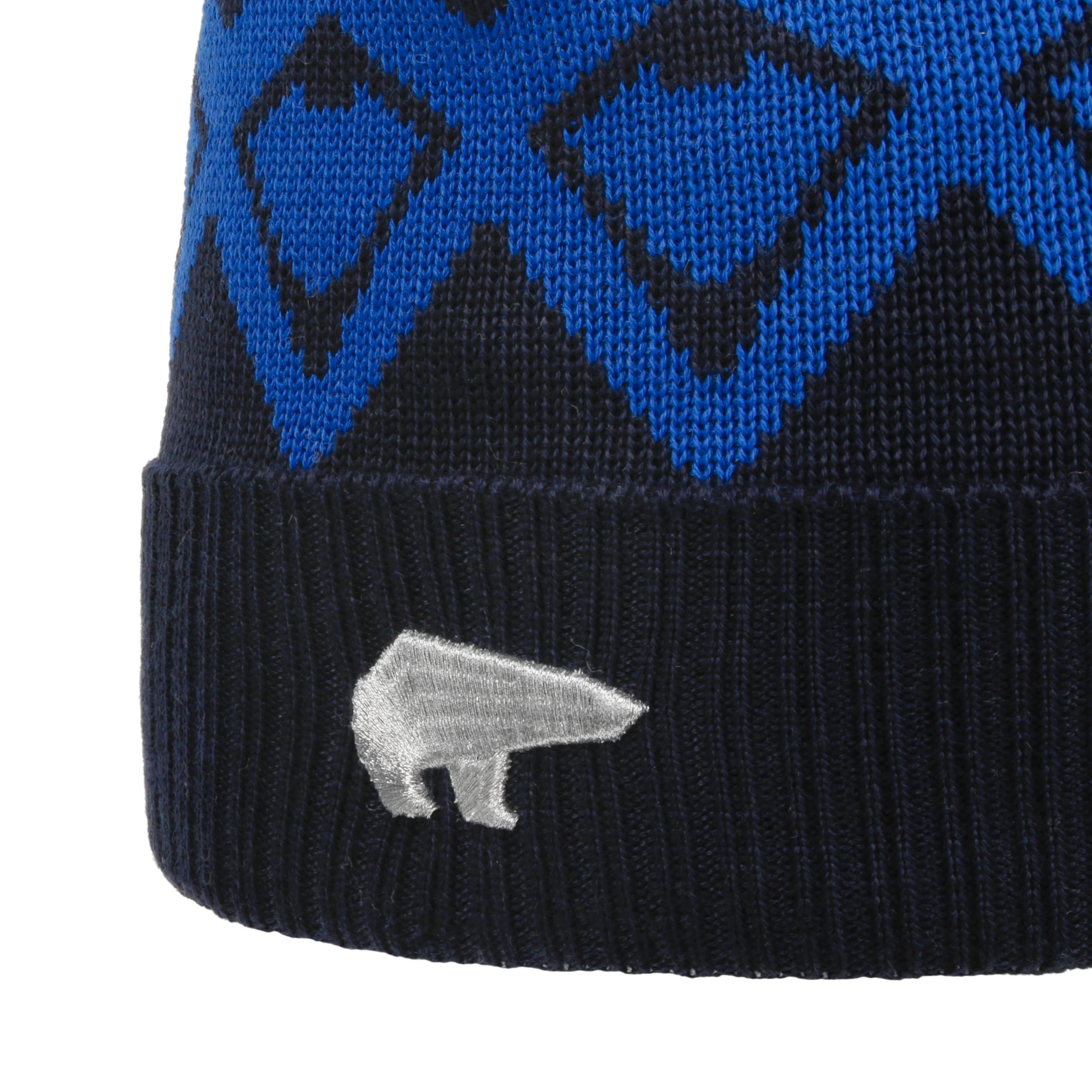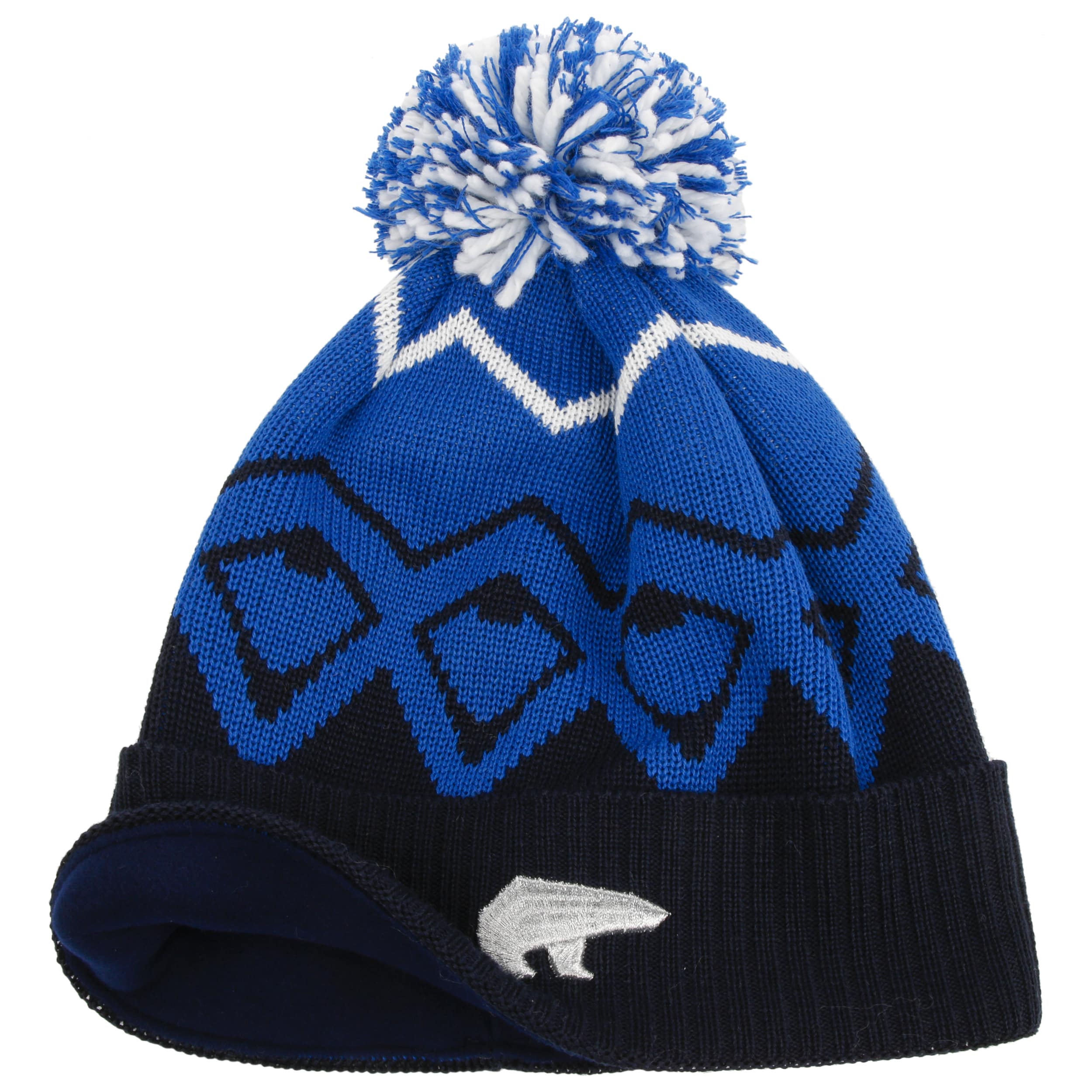 From the wide turn-up to the two-tone pompom, this winter hat impresses with an original design. Intense colours have been chosen here, giving the winter wardrobe a unique accent. Thanks to 50% merino wool, the beanie hugs the head and ears softly and warmly. Truly animalistic: Winter hat manufacturer Eisbär has embroidered a small polar bear as the logo.