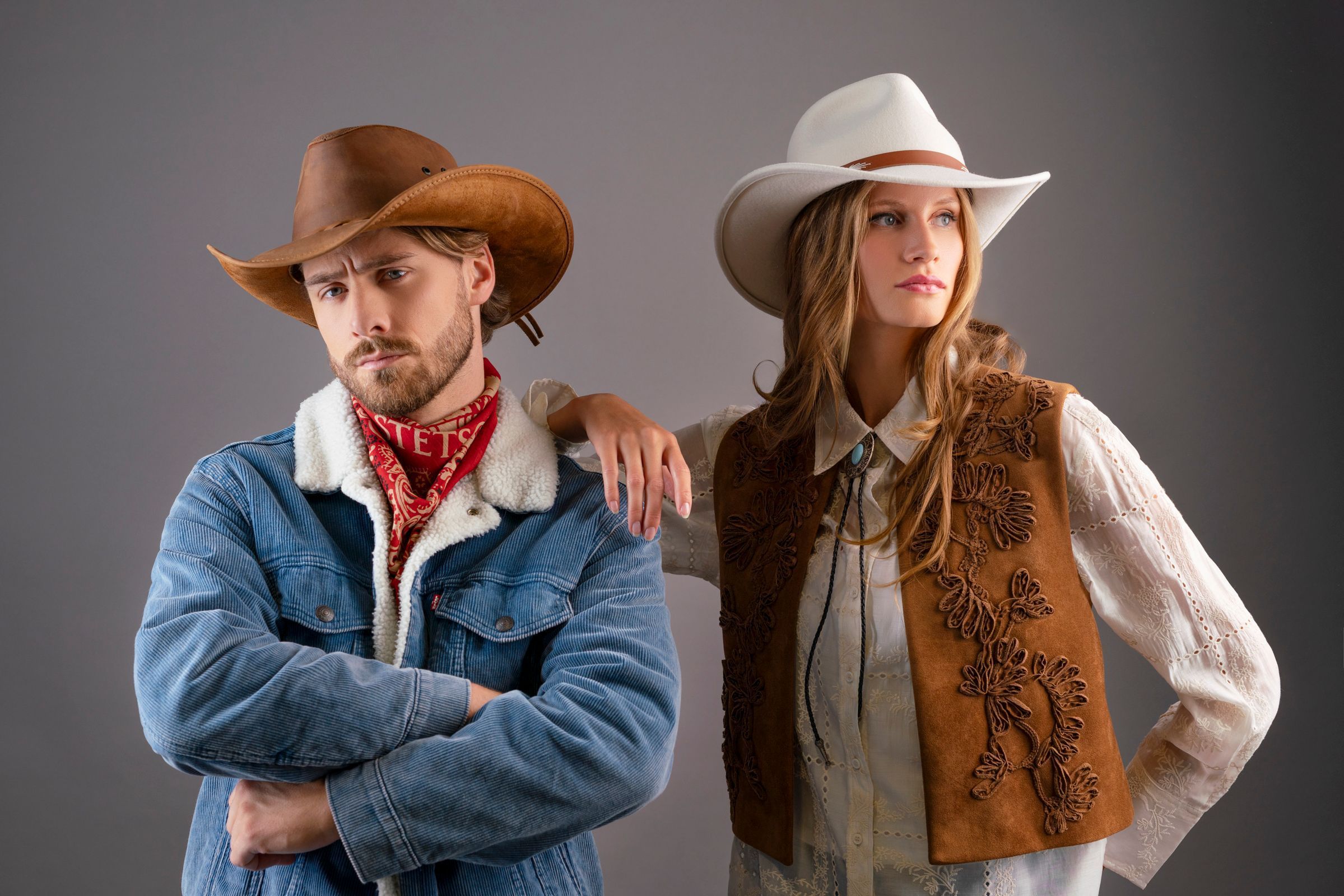 We stock a wide range of cowboy hats in various designs for every season. Made of straw for the summer, felt for all year round and leather for the change of seasons.
